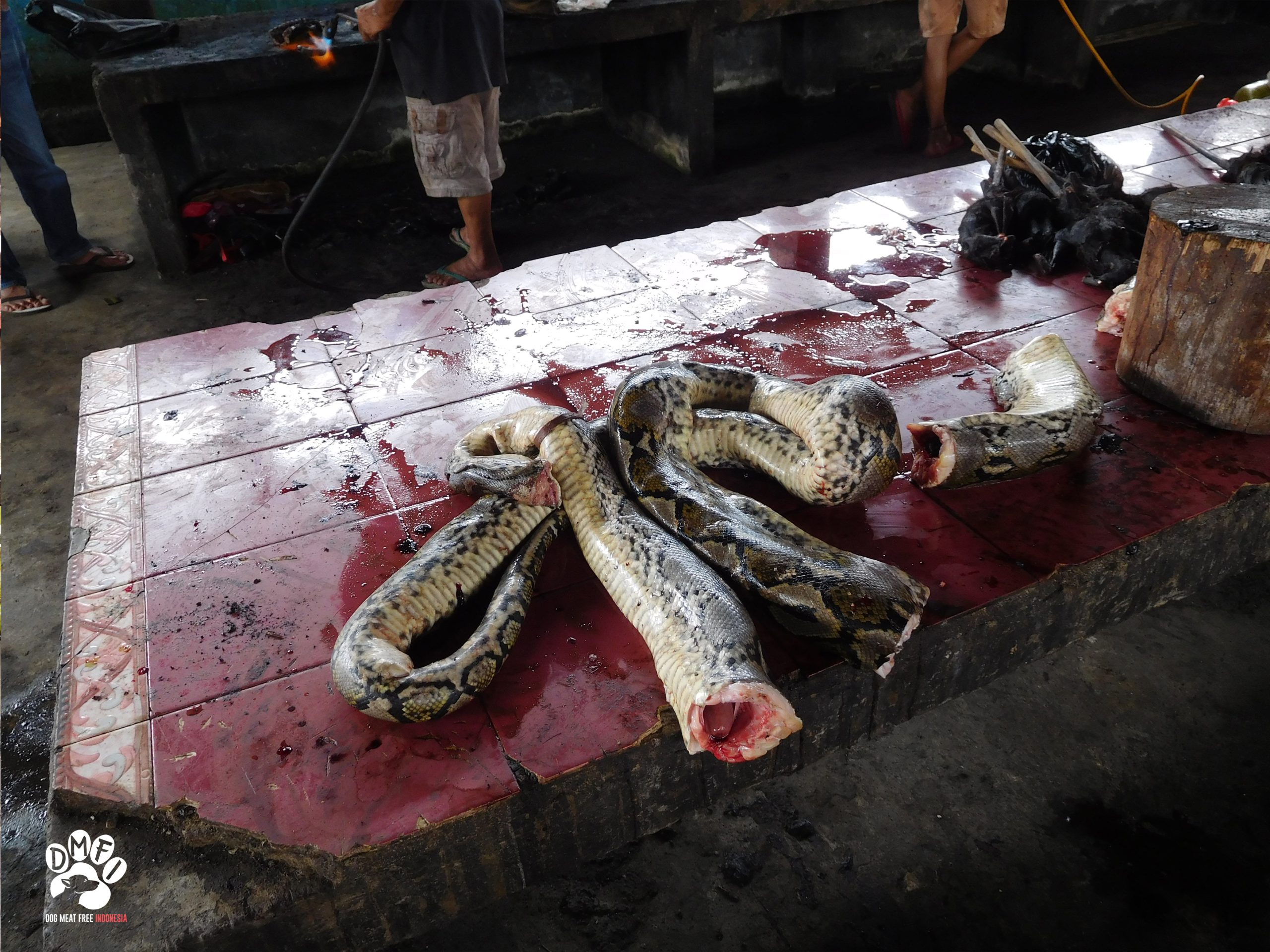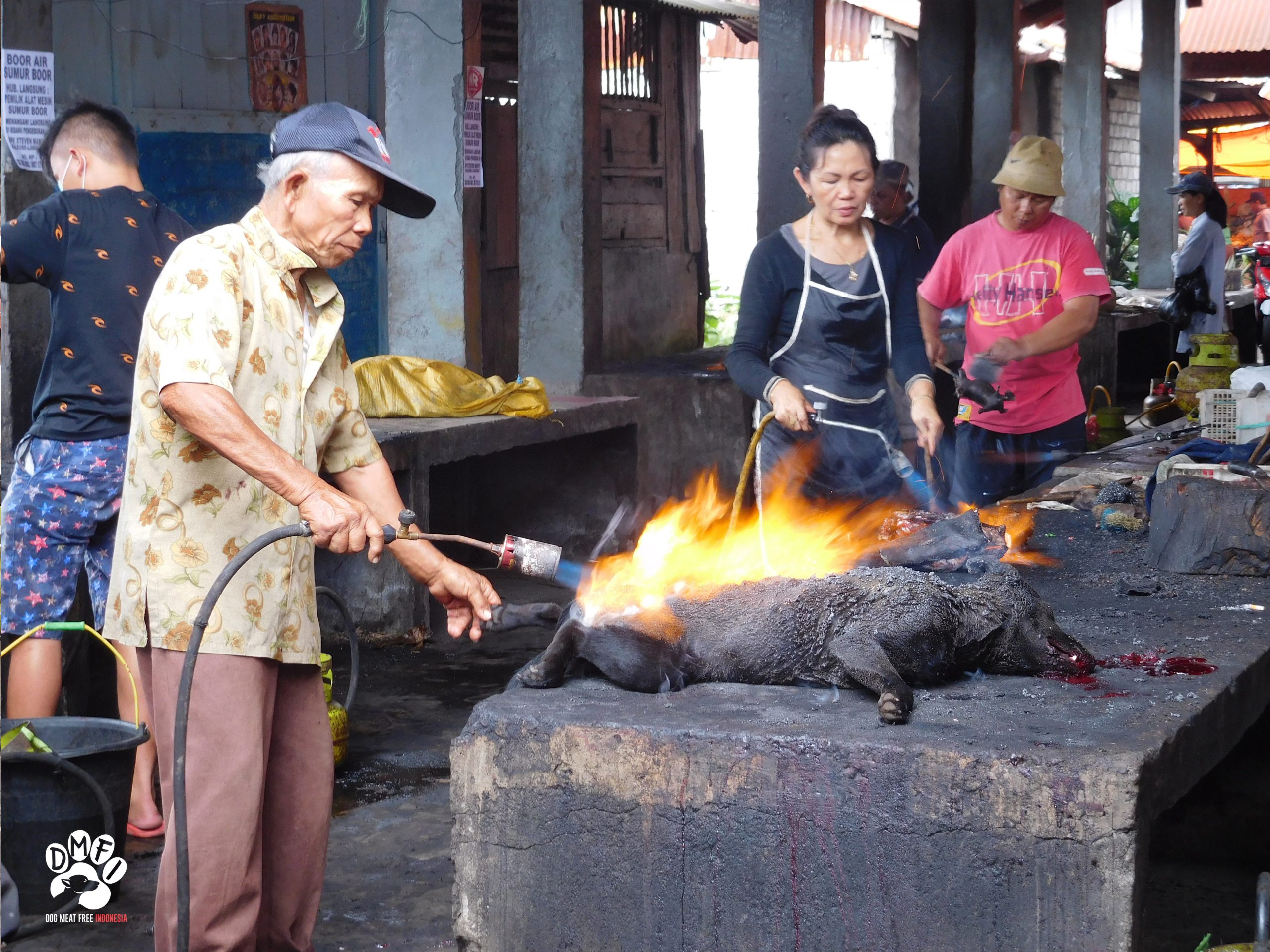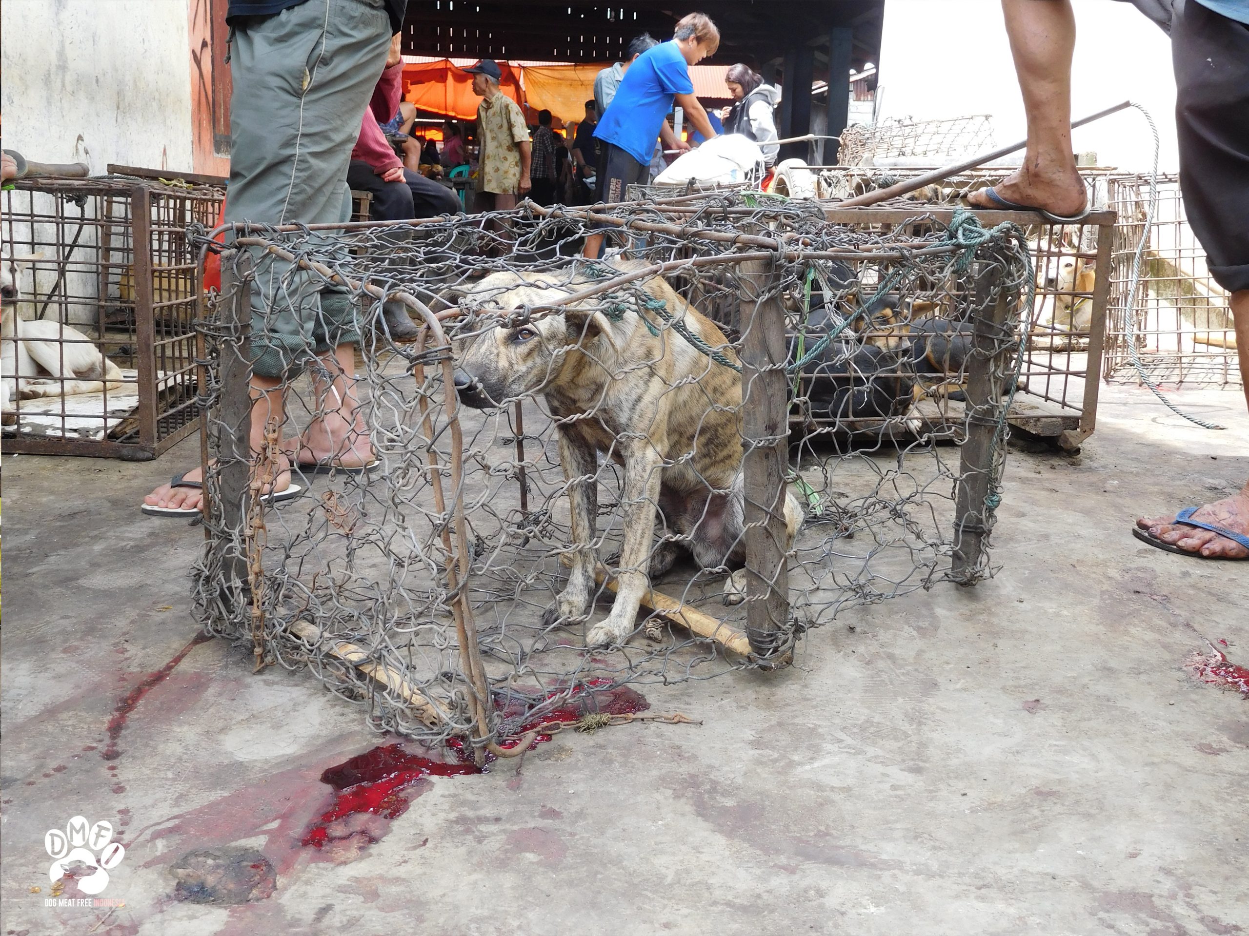 Животные, которых мы видели на рынках, были напуганы, часто больны и ранены после изнурительных поездок на рынок и грубого обращения со стороны торговцев. Они сидели в клетках, сбившись в кучу, наблюдая, как других убивают… дрожа от страха, ожидая своей очереди. Зрелище абсолютного ужаса в их глазах, стук дубины, когда их убивали, их крики от боли и запах горелой шерсти и плоти невообразимы и незабываемы», рассказывает Лола Уэббер, координатор зоозащитной коалиции «Индонезия за отказ от собачьего мяса» (Lola Webber, Dog Meat-Free Indonesia Coalition Coordinator).