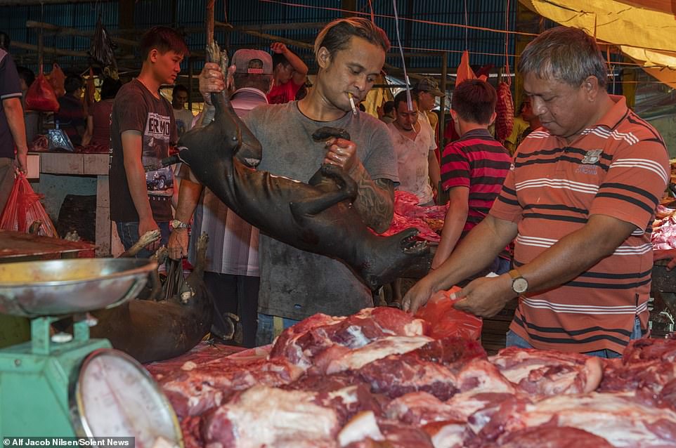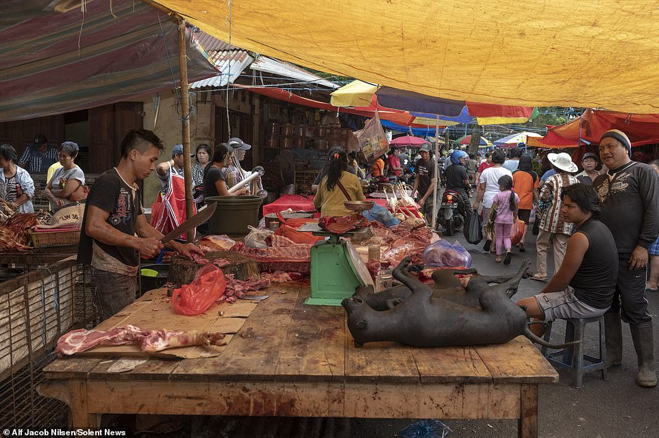 Фото материалы от DMFI c рынка Langowan, торгующего также собачьим и кошачьим мясом.