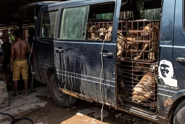 Затем собак помещают в маленькие клетки, загружают в мопеды или специально оборудованные автомобили и перевозят на скотобойни по всей стране.